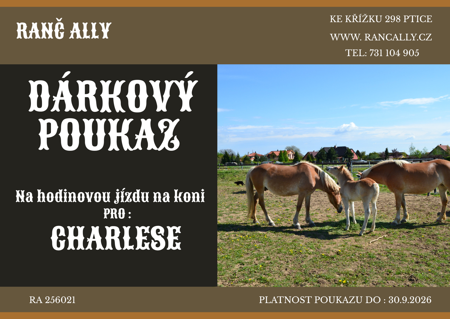 Na naše služby nabízíme tyto dárkové poukazy. Text lze upravit podle počtu osob nebo objednaných hodin. Platnost poukazu je jeden rok.