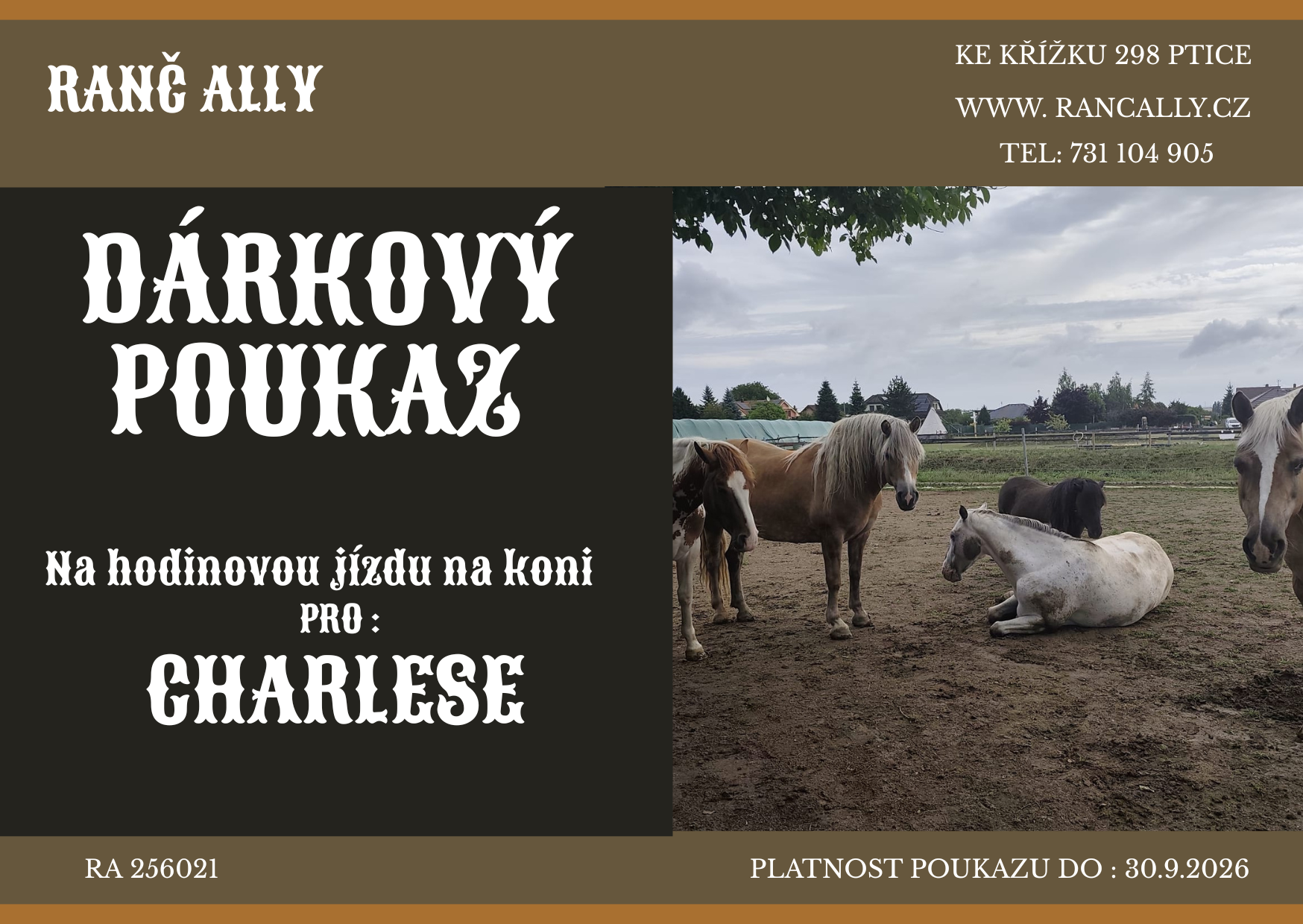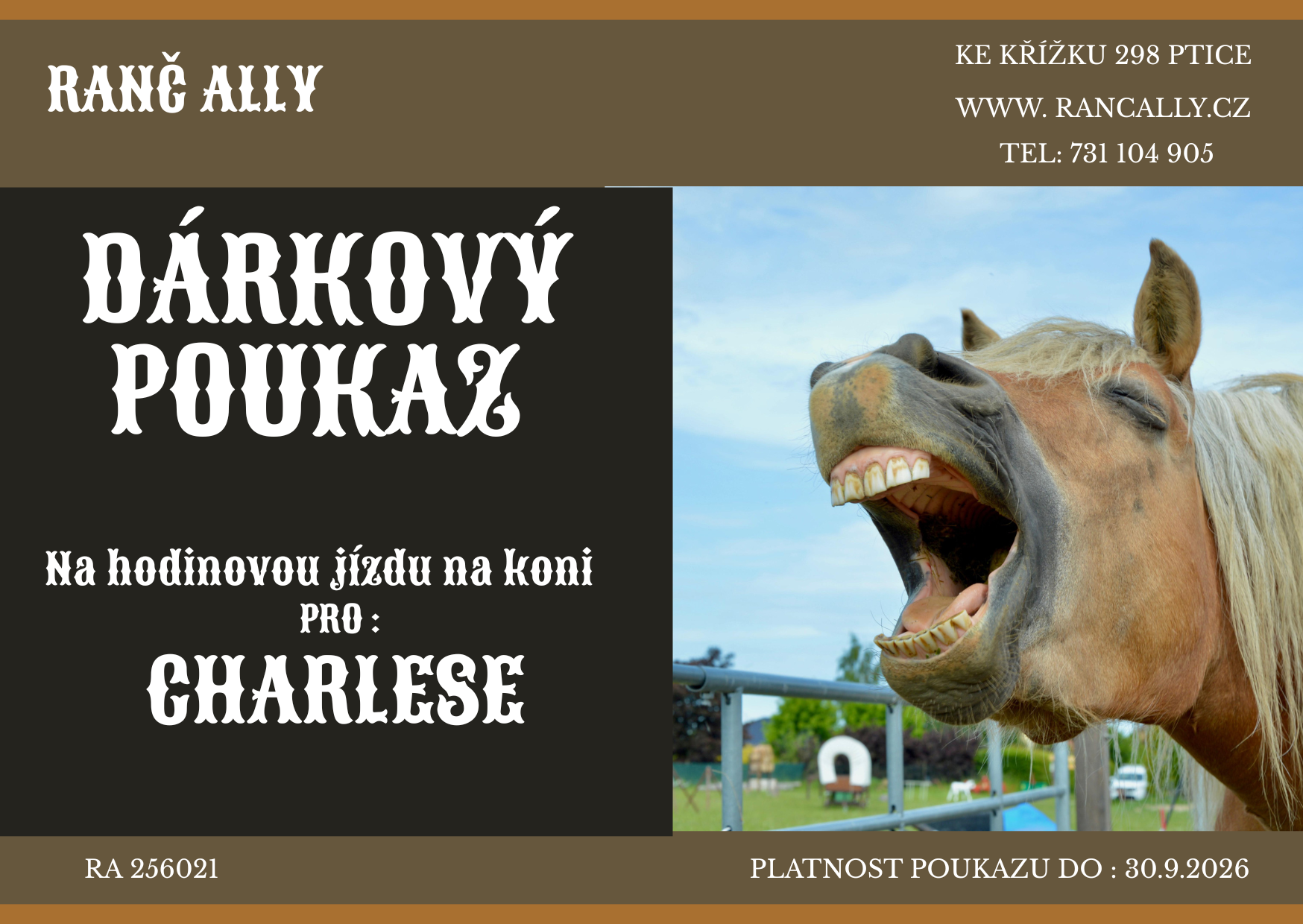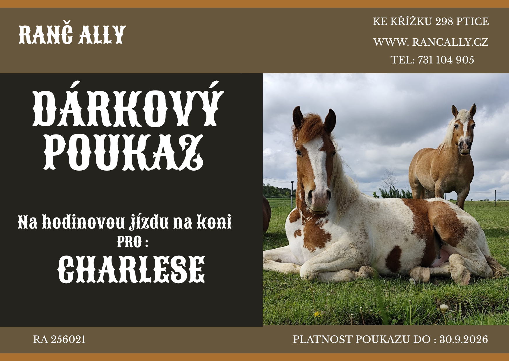 Na naše služby nabízíme tyto dárkové poukazy. Text lze upravit podle počtu osob nebo objednaných hodin. Platnost poukazu je jeden rok.