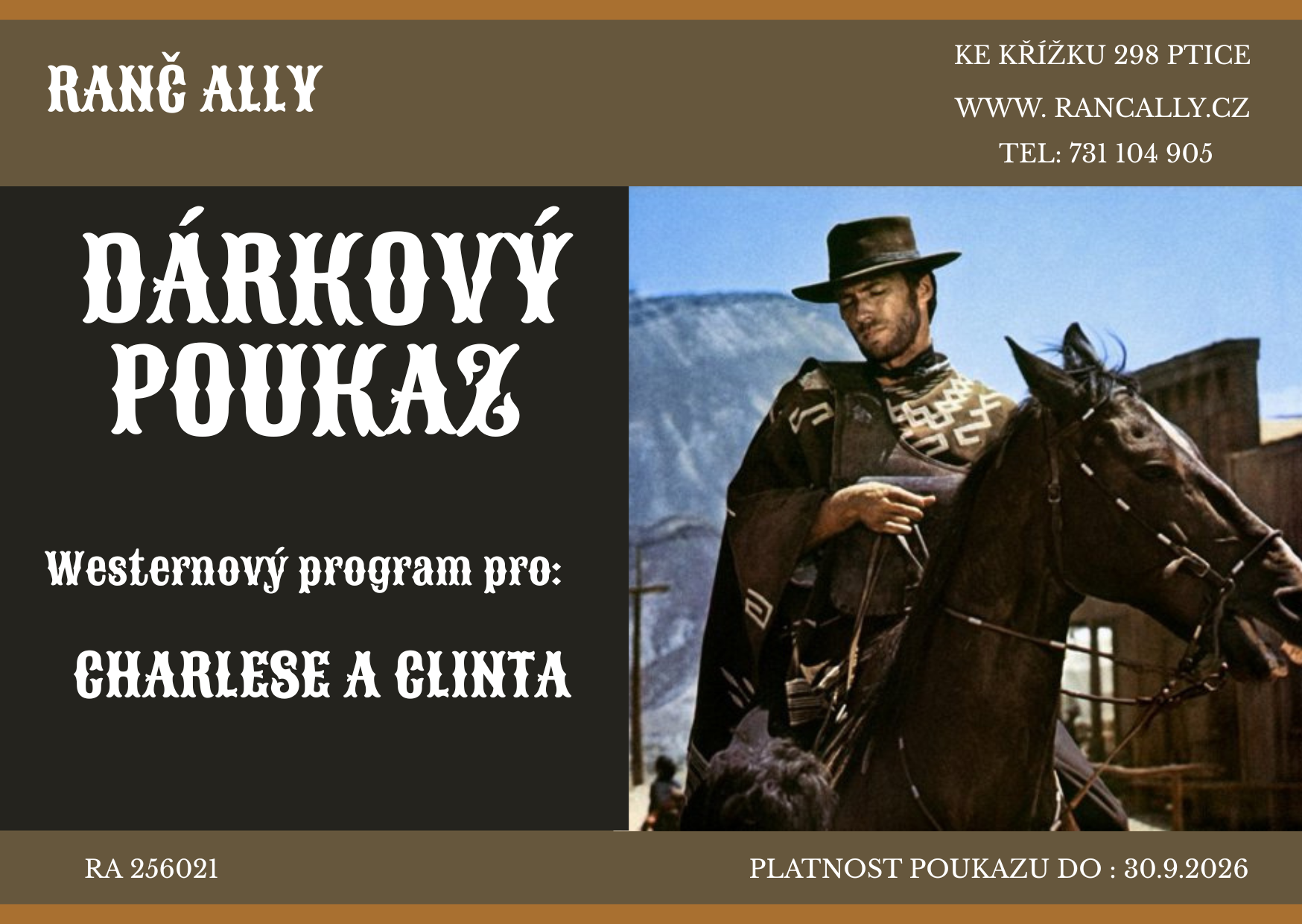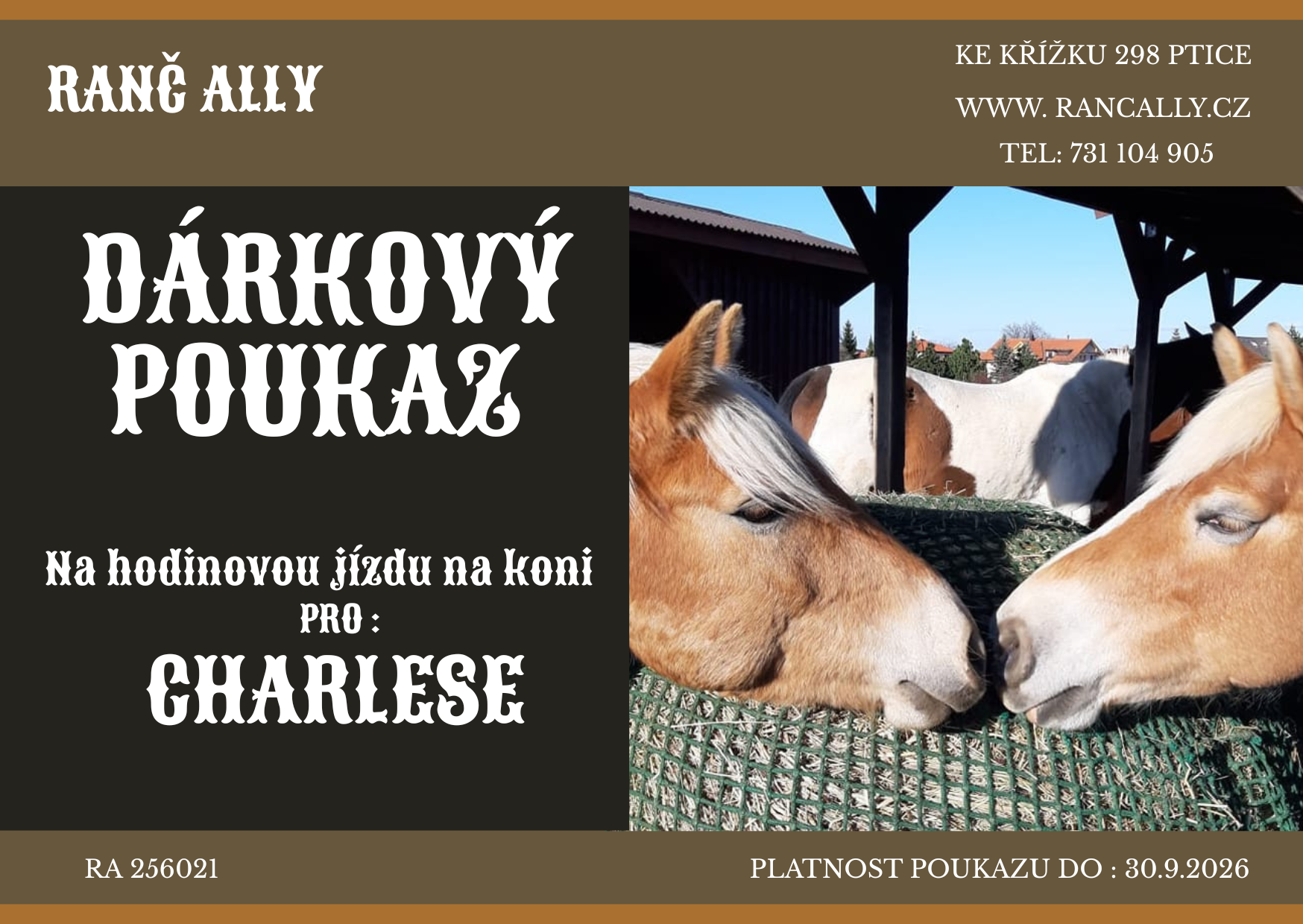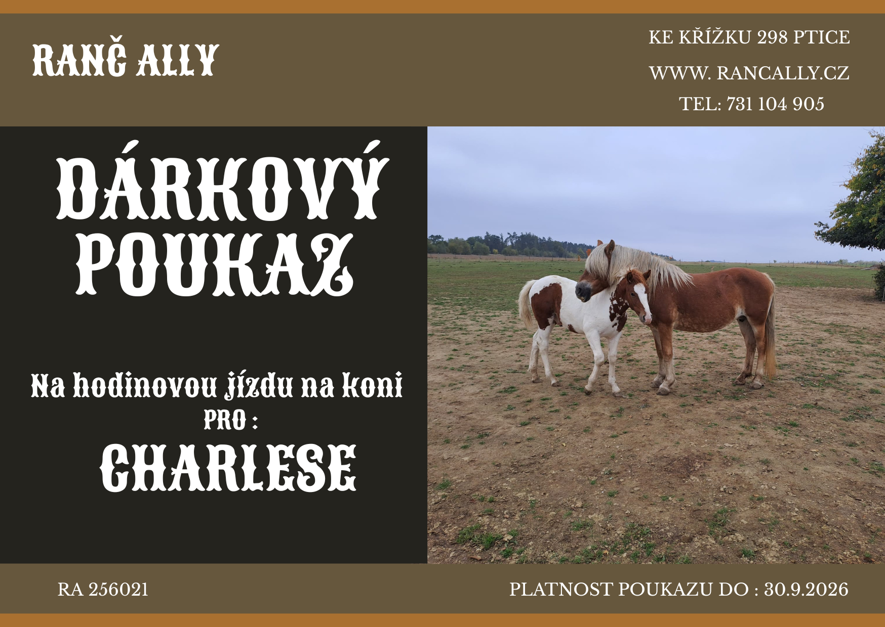 Na naše služby nabízíme tyto dárkové poukazy. Text lze upravit podle počtu osob nebo objednaných hodin. Platnost poukazu je jeden rok.